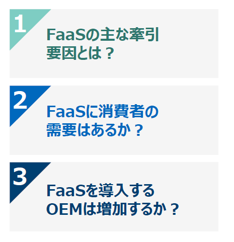このFaaS(Features-as-a-Service)と呼ばれるビジネスモデルにより、OEMへは新たな収益源がもたらされ、新たなプレーヤーにとっては道が開かれることになります。