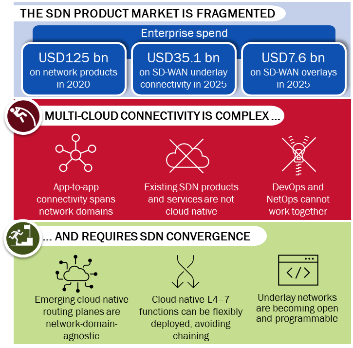 Today’s diverse SDN-based products do not address enterprise app-to-app connectivity needs across clouds