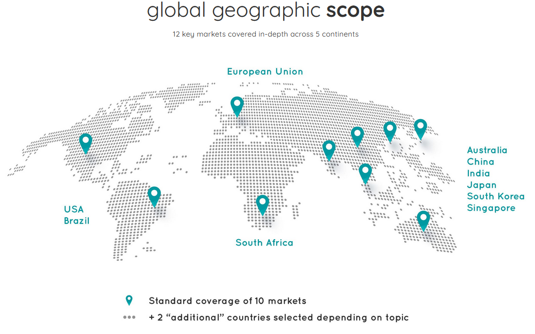上記10市場を標準カバー、更にトピックに応じて選択される+2つの「追加」国 なぜ「グローバルトレンドサービス」を購読すべきなのか
