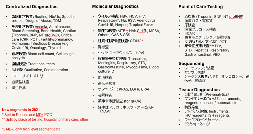 IVDセグメント別サイズ、シェア情報一覧(2021年度版)