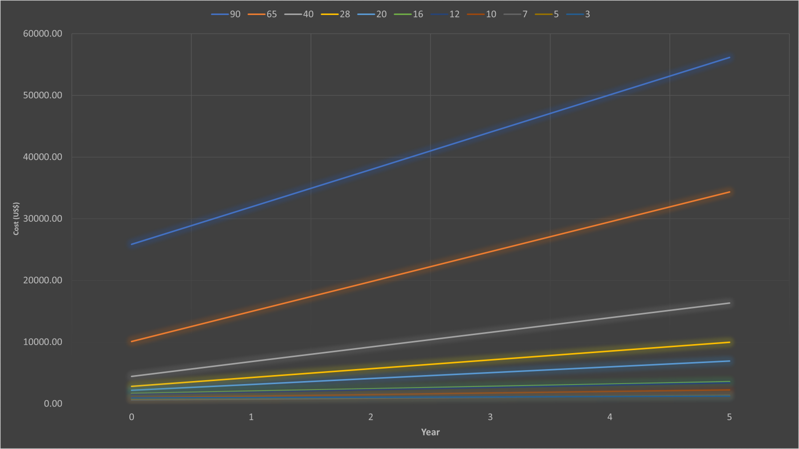 The costs associated with producing and operating a chip at each of the given nodes over the course of 5 years, based on our model of a 3 nm chip used for AI purposes. Source: IDTechEx