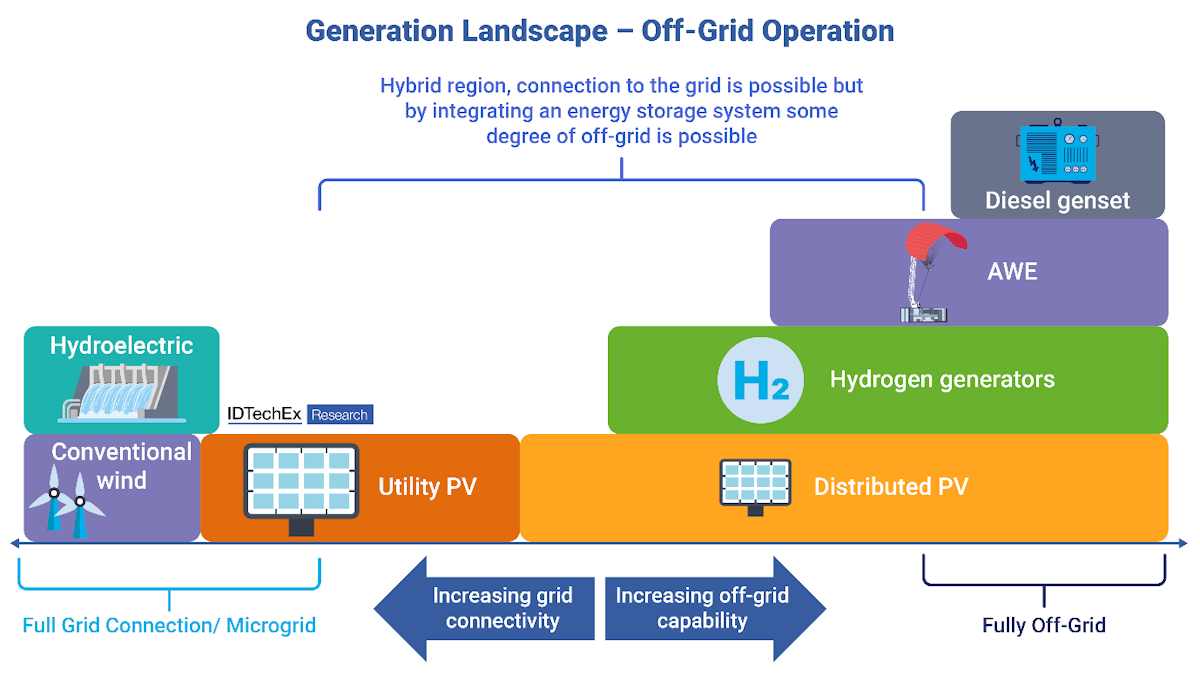 IDTechEx's report also covers a range of alternative energy sources, such as airborne wind energy (AWE), conventional wind, and fossil fuels. IDTechEx benchmarking assesses the relative strengths and weaknesses of each technology within this report, considering aspects such as power per unit area, OPEX, CAPEX, complexity of installation, stability of power and more. The results of this analysis are disseminated in this report.