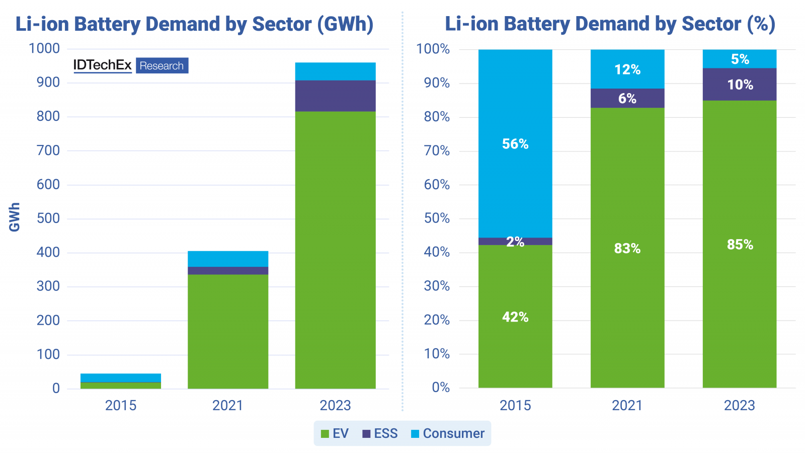 Global Li-ion battery storage market by chemistry split % across sectors 2016-2035 |