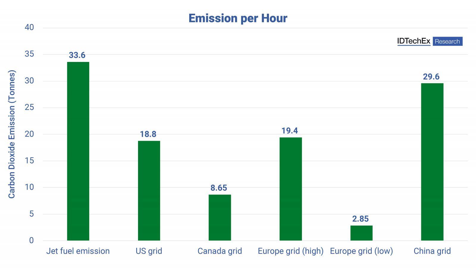 Emissions of a Boeing are 777-9 per hour compared to a theoretical electric alternative of the same size.