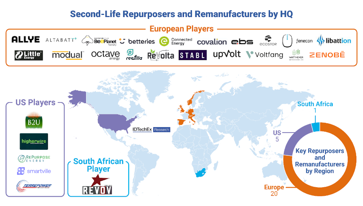 Second-Life Repurposers and Remanufacturers by HQ. Source: IDTechEx.