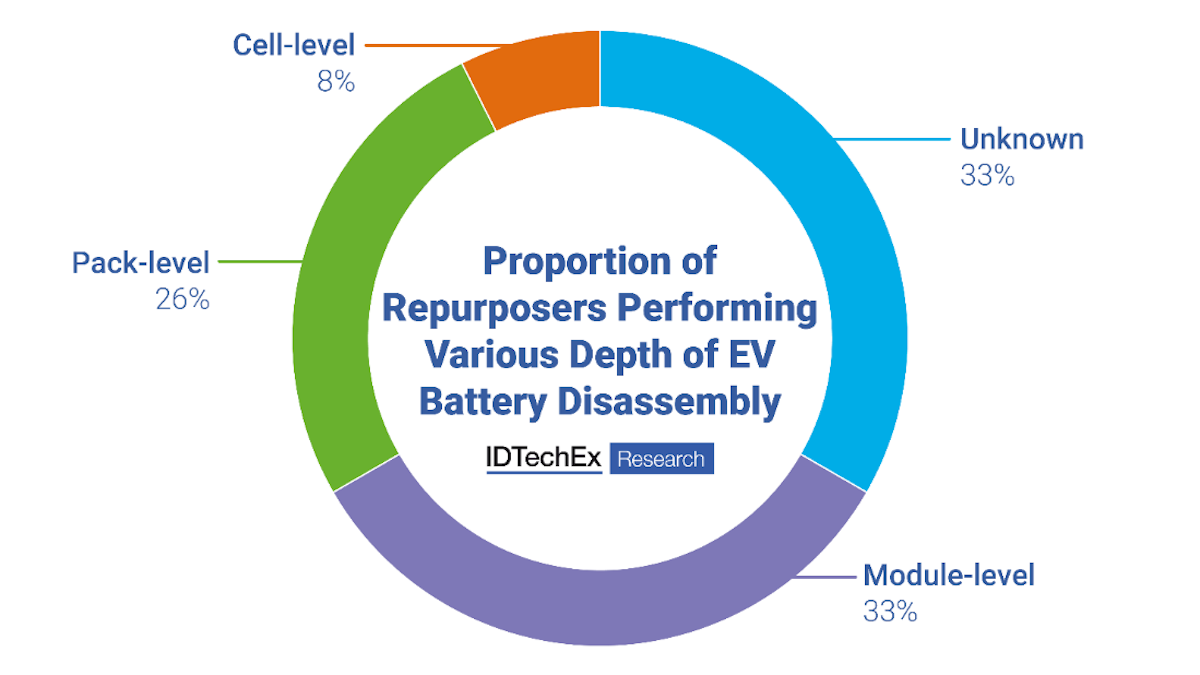 Proportion of Repurposers Performing Various Depth of EV Battery Disassembly. Source: IDTechEx.