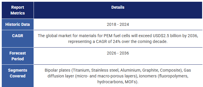 PEM燃料電池は様々な構成要素の相乗的相互作用によって作動する。BPPは燃料電池全体に燃料を供給し、GDLは反応物と生成物をそれぞれ触媒層へ/触媒層から輸送する。触媒は膜(CCM)上にコーティングされ、膜自体はプロトンを燃料電池の一方から他方へ輸送する。CCMとGDLを総称してMEAと呼ぶ。PEM燃料電池用材料市場は、2026年から2036年にかけて年平均成長率24%で成長すると予想されているが、燃料電池に使用される部品に関しては重要な疑問がある。既存材料と新興材料の動向は?需要の増加に対応するため、これらの部品の製造方法はどのように変化するのか?拡大する燃料電池部品市場の主要プレーヤーは?