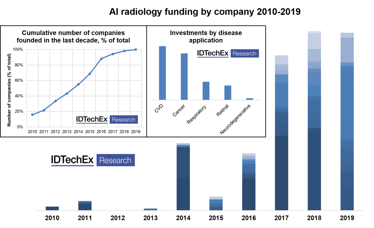 Inset right: Investments into image recognition AI companies by disease application since 2010.