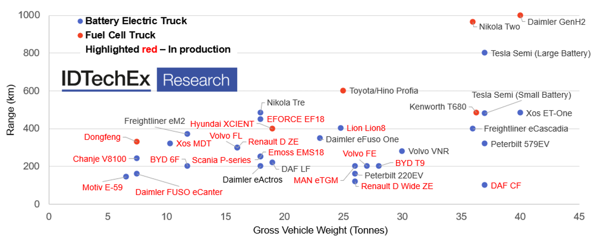 Zero-emission medium and heavy-duty trucks by technology and production status