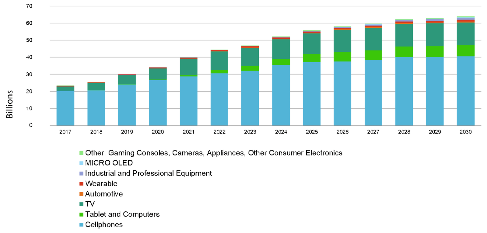 OLED Display Forecasts 2017-2030 by Value $ Billions