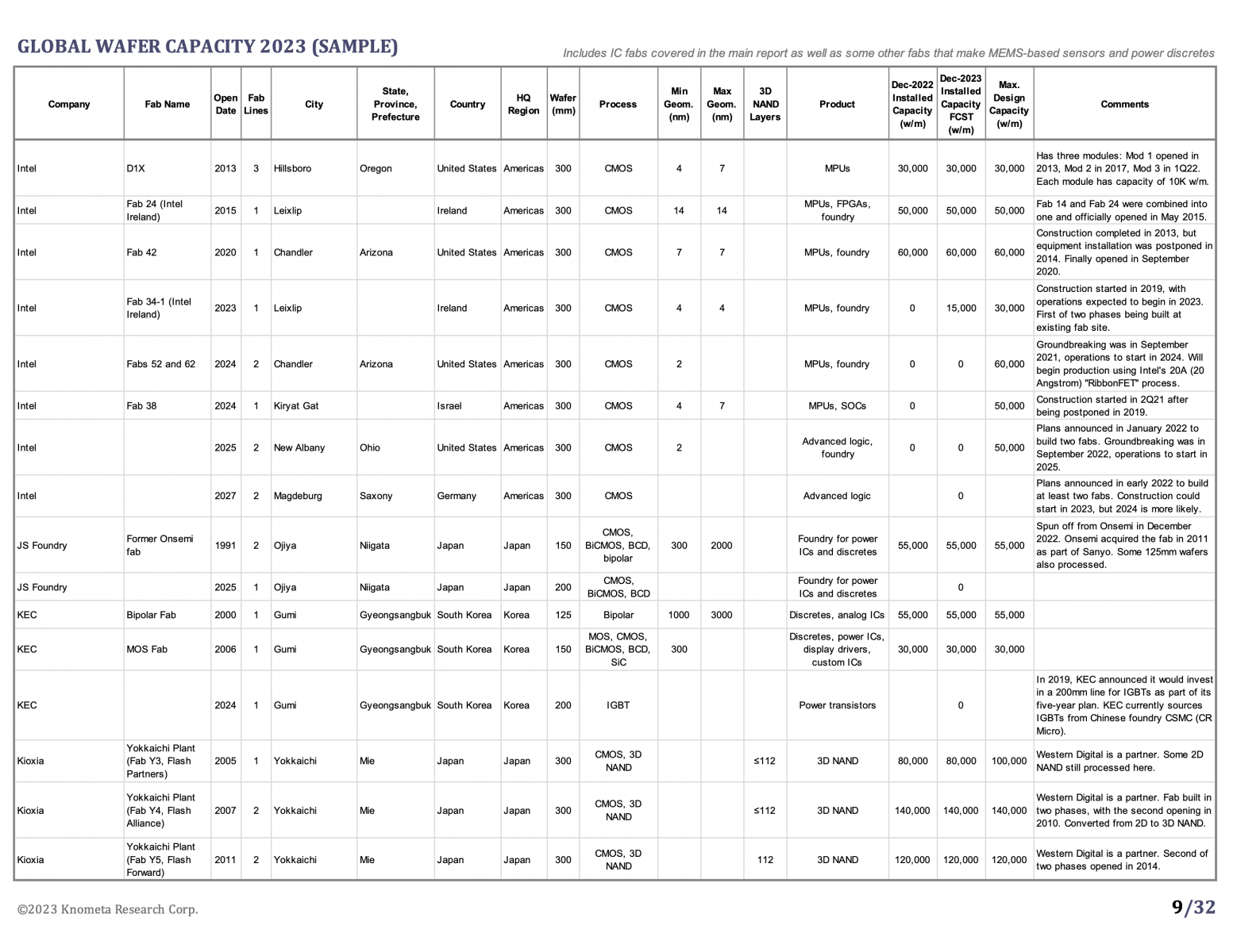 Knometa took ownership of IC Insights' Global Wafer Capacity report in late 2021. As an IC Insights executive, Knometa's Trevor Yancey created this report in 2007 and has been the report's lead analyst and project manager every year since. Mr. Yancey has authored the report as an independent consultant since 2015.