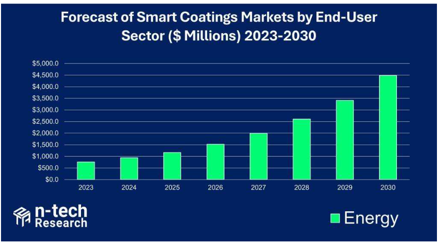 SummaryIn this report, n-tech Research provides a market forecast, analysis, and outlook for Smart Coatings use in the energy sector, a market that we expect to grow to nearly $4.5 billion in 2030.