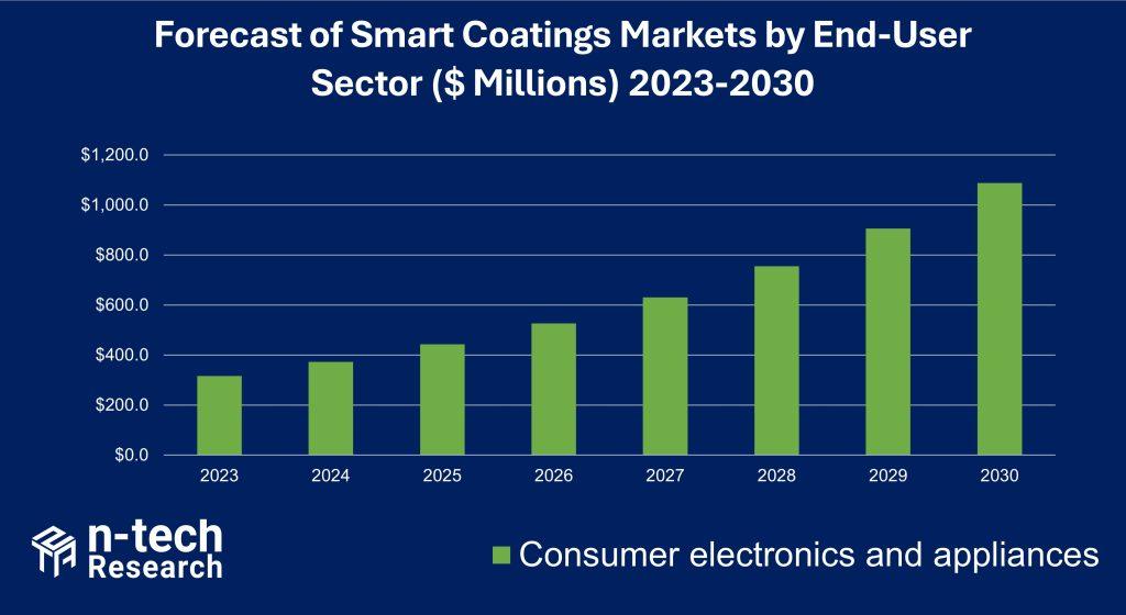 In this report n-tech Research provides a market forecast, analysis and outlook for Smart Coatings use in consumer electronics and appliances applications, a market that we expect to grow to nearly $1.1 billion in 2030.