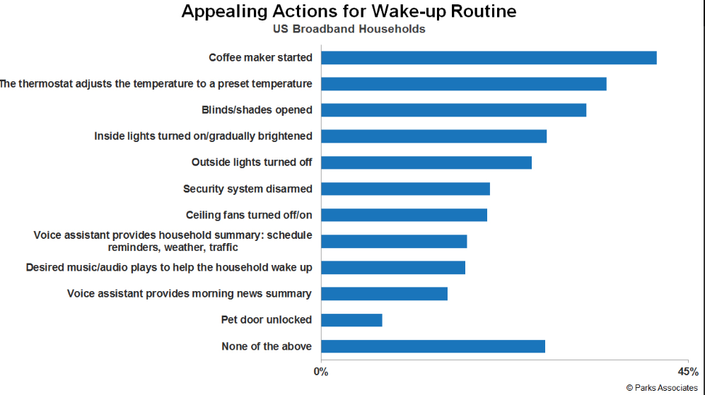 Table of ContentsConsumer Analytics: Smart Home Devices and Services Track Key Questions Answered Survey Methodology Defining Heads of Broadband Households Definitions and Abbreviations Reading Parks Associates Charts Executive Summary Industry Insight Room-by-Room at a Glance – Top Five Connected Devices by Room Room-by-Room at a Glance – Smart Home Device Room Penetration Key Findings and Market Impact Smart Home Device Ownership Smart Home Device Ownership (2014 - 2019) Smart Home Device Adoption – Top 10 (Q2/19) Smart Home Device Adoption, Cont’d (Q2/19) Smart Appliance Adoption (Q2/19) Health & Fitness Device Adoption (Q2/19) Maternal & Baby Connected Device Adoption (Q2/19) A Room-by-Room Analysis – Research Methodology Room-by-Room – Research Methodology Hallway or Entrance Smart Home Device Landscape – Hallway or Entrance Smart Home Brand Landscape – Hallway or Entrance Smart Home Use Cases – Hallway or Entrance Smart Home Device Placement by Room - Hallway or Entrance (Q2/19) Smart Home Device Placement Intention by Room - Hallway or Entrance (Q2/19) Living or Family Room Smart Home Device Landscape – Living or Family Room Smart Home Brand Landscape – Living or Family Room Smart Home Use Cases – Living or Family Room Smart Home Device Placement by Room - Living or Family Room (Q2/19) Smart Home Device Placement Intention by Room - Living or Family Room (Q2/19) Kitchen Smart Home Device Landscape – Kitchen Smart Home Brand Landscape – Kitchen Smart Home Use Cases – Kitchen Smart Home Device Placement by Room - Kitchen (Q2/19) Smart Home Device Placement Intention by Room - Kitchen (Q2/19) Utility or Laundry Room Smart Home Device Landscape – Utility or Laundry Room Smart Home Brand Landscape – Utility or Laundry Room Smart Home Use Cases – Utility or Laundry Room Smart Home Device Placement by Room - Utility or Laundry Room (Q2/19) Smart Home Device Placement Intention by Room - Utility or Laundry Room (Q2/19) Master Bedroom Smart Home Device Landscape – Master Bedroom Smart Home Brand Landscape – Master Bedroom Smart Home Use Cases – Master Bedroom Smart Home Device Placement by Rooms - Master Bedroom (Q2/19) Smart Home Device Placement Intention by Room - Master Bedroom (Q2/19) Bathroom Smart Home Device Landscape – Bathroom Smart Home Brand Landscape – Bathroom Smart Home Use Cases – Bathroom Smart Home Device Placement by Room - Bathroom (Q2/19) Smart Home Device Placement Intention by Room - Bathroom (Q2/19) Other Bedrooms Smart Home Device Landscape – Other Bedrooms Smart Home Brand Landscape – Other Bedrooms Smart Home Use Cases – Other Bedrooms Smart Home Device Placement by Rooms - Other Bedrooms (Q2/19) Smart Home Device Placement Intention by Room - Other Bedrooms (Q2/19) Patio or Outdoors Smart Home Device Landscape – Patio or Outdoors Smart Home Brand Landscape – Patio or Outdoors Smart Home Use Cases – Patio or Outdoors Smart Home Device Placement by Room - Patio or Outdoors (Q2/19) Smart Home Device Placement Intention by Room - Patio or Outdoors (Q2/19) Whole Home Smart Home Device Landscape – Whole Home Smart Home Brand Landscape – Whole Home Smart Home Use Cases – Whole Home Appealing Actions for Wake-up Routine (Q2/19) Appealing Actions for Away Routine (Q2/19) Appealing Actions for Bedtime Routine (Q2/19) Smart Device Preferred Control Method Preferred Control Method for Smart Home Devices (Q2/19) Preferred Control Method by Ownership Segment (Q2/19) Preferred Control Method by Age Group (Q2/19)