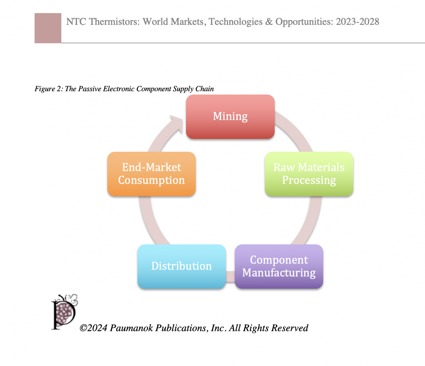 Paumanok Publications, Inc. has published its 2024 study on NTC Thermistor markets, technologies and opportunities. Because of the dual use of NTC (Negative Temperature Coefficient) type thermistors as temperature sensors and circuit protection devices the component has found itself in significant demand in 2023 through year end with consumption in key end markets such as automotive, home appliances, digital electronics, industrial, and high-reliability end markets.