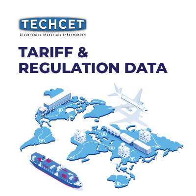 Press ReleaseGlobal Trade Restrictions on Semiconductor Materials Intensify: TECHCET Offers Critical Market InsightsSan Diego, CA, December 11, 2024: In a series of escalating trade measures, China announced on December 3, 2024, a complete export ban to the U.S. on rare earth materials, including gallium, germanium, antimony, and superhard materials. Additionally, China has tightened its export license restrictions on graphite to the U.S. This move follows the U.S. government’s December 2, 2024, announcement of stricter export controls on semiconductor manufacturing equipment, such as etching and lithography equipment, targeting countries such as China, Macau, Russia, North Korea, Iran, Syria. These developments are part of a broader trend of global trade tensions impacting the semiconductor industry. Sample preview of techcet.com portal with tariff and regulation data As global trade restrictions and tariffs intensify, it is imperative for market participants to stay informed so that they can effectively navigate challenges and build resilient supply chains. TECHCET, a leading advisory firm focused on materials and equipment components critical to semiconductor manufacturing, provides up-to-date tariff rate information and export license requirements across major markets, including the U.S., China, Japan, Korea, and Europe. Key information provided by TECHCET includes: