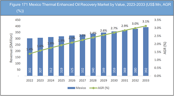 Figure 171 Mexico Thermal Enhanced Oil Recovery Market by Value, 2023-2033 (US$ Mn, AGR (%))